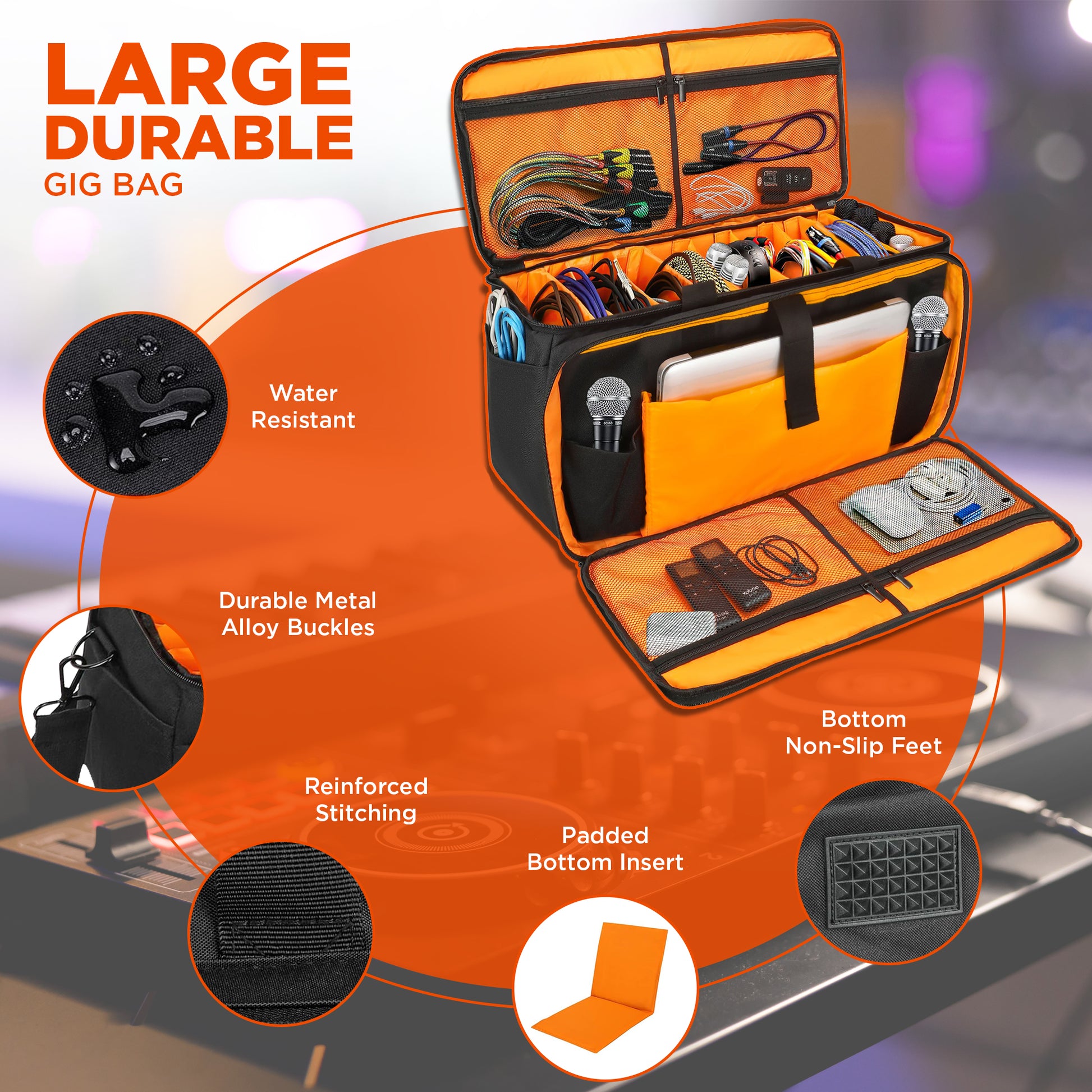 - Protection: High Durability nylon exterior with waterproof coating. Impact-resistant EVA padding on all sides of the main compartment. Built to stand up to wear and tear. With a rigid hard padded bottom and 4 non-slip feet, this gig bag will keep all your sensitive gear safe and secure.